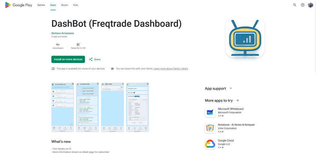 I’m happy to announce DashBot, an unofficial Freqtrade dashboard in form of android mobile app. It’s free to install and use it in read-only mode. To have controls over the bots and more additional infos, you will have to subscribe to the premium plan. You can go to the play store here.